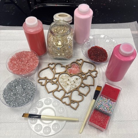 Materials Provided: Wood frame, premium acrylic paints, various colors of crushed glass, resin, and all safety gear.